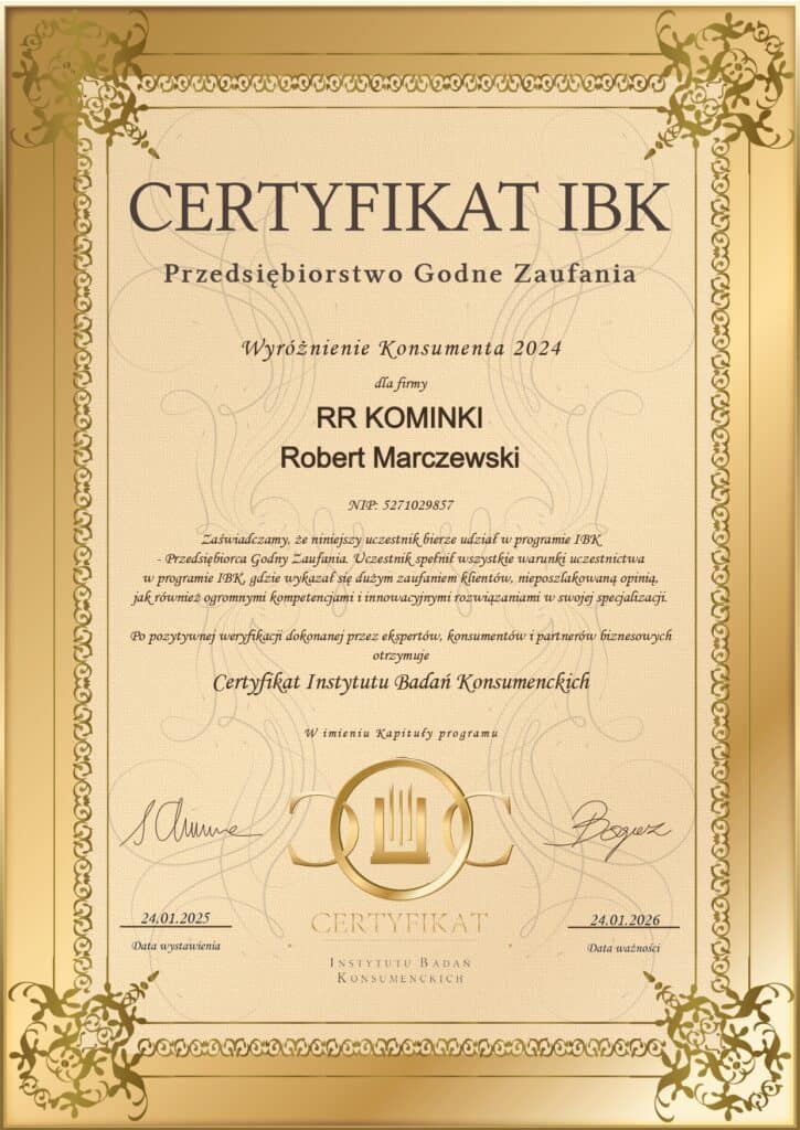 RR Kominki Otrzymaliśmy Wyróżnienie – Wybór Konsumenta 2024 w kategorii Kominki Zabudowa Kominkowa Montaż